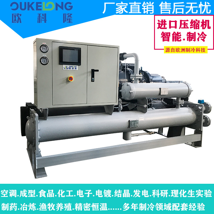 欧科隆自主研发热回收水冷螺杆式冷水机是一款高效节能的工业制冷设备,创新性地将制冷与热能回收相结合,实现能源梯级利用。该机型采用螺杆压缩技术,在提供5℃~35℃冷冻水的同时,可回收60℃~80℃高温热水,综合能效比达8.0以上。