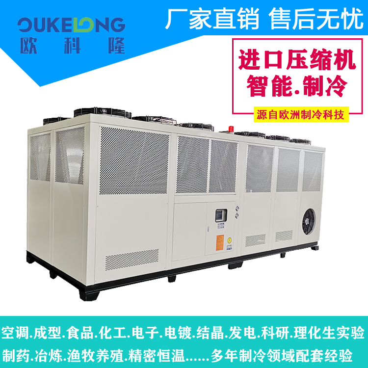 欧科隆150匹风冷螺杆式冷水机以工业级的稳定性和智能化管理功能,满足大型项目的制冷需求,年运行节能率可达25%以上。
