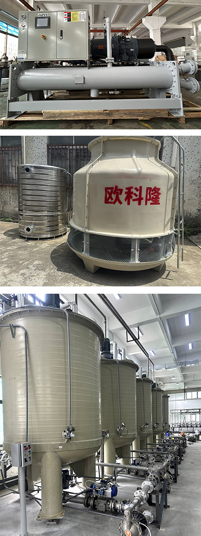 本案例位于深圳坪山某制药厂反应釜配套水冷螺杆式冷水机组,保护冷却水塔,保温水箱,内外循环水泵。