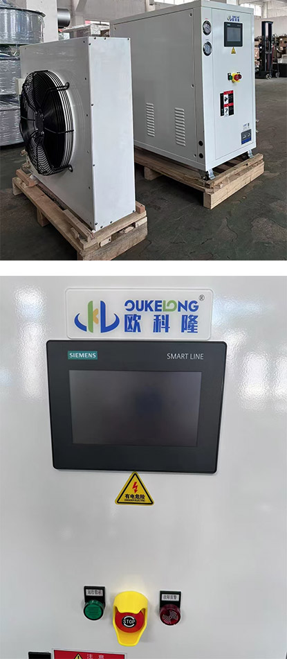 本案例位于华中科技大学物理实验室使用高阶定制冷水机,特点:控制器为西门子程序控制、流量温度压力PLC变频可调、内外机分体设计,内机在实验设备旁边,外机在外墙上方便通风散热。