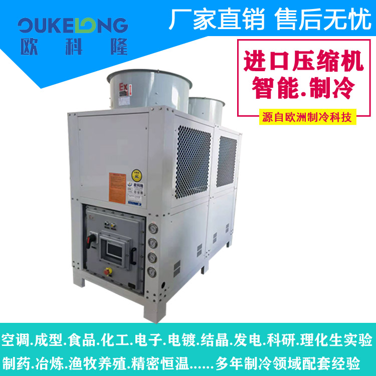 欧科隆20匹低温防爆冷水机以安全、稳定、高效为核心,适用于各类防爆环境,并提供定制化服务,满足不同工业需求。