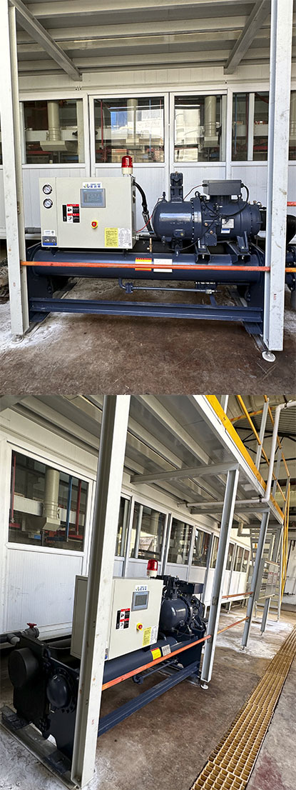 本案例是十堰二汽电镀生产线配套耐腐蚀冷水机,该机型为耐腐蚀换热器,因为电镀液具有极强的腐蚀性如果采用普通材质换热器会出现换热器腐蚀穿孔的现象。该机组控制器为西门子1500控制器,可并入用户整厂区的大系统,便于对整个系统的管理和操控。